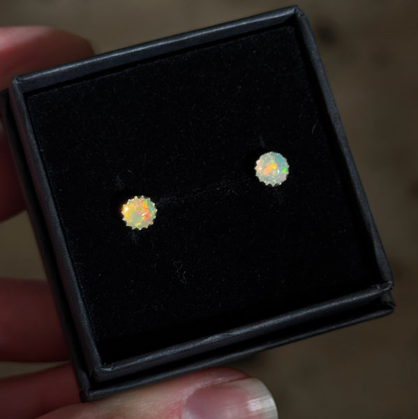 Ethiopal Opal stones are set in sterling silver for a minimal, elegant pair of everyday stud earrings. Lightweight and timeless, they’re finished with 10mm sterling silver posts and butterfly backs for a comfortable, secure fit.