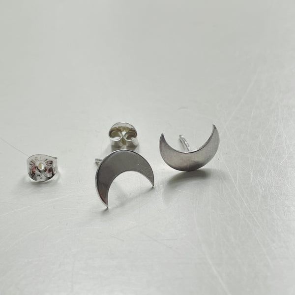 These simple silver crescent moon stud earrings are the perfect everyday accessory for anyone who loves minimalist jewelry with a celestial touch. Each tiny moon is hand-cut, shaped, and filed by hand in solid sterling silver, creating a clean, modern silhouette that pairs effortlessly with any style.